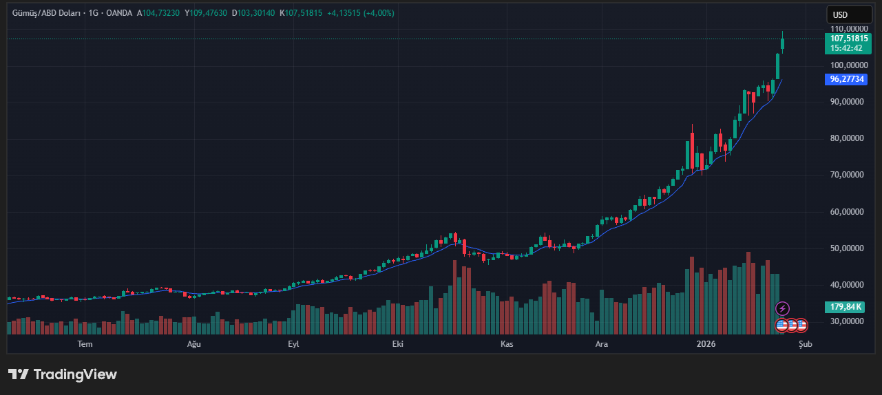The surge in gold is not occurring in isolation. Silver prices have also reached a historic milestone, surpassing $107 per ounce for the first time ever. Since the start of 2026, silver has risen 48%, underscoring a broader bullish trend across the precious metals complex.
