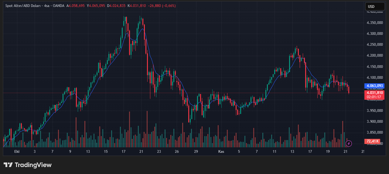Spot gold fell 1.12% on Friday, slipping to $4,031.58 per ounce. With this move, the metal is on track for a weekly loss, struggling to find upward traction amid wavering global risk sentiment. The recent price action underscores the difficulty gold faces in sustaining momentum while rate expectations remain uncertain.