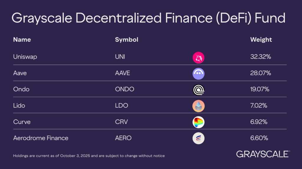 As of Q3 2025, Grayscale made major changes in its DeFi Fund (DEFG) portfolio.