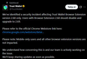 The Trust Wallet breach once again highlights how critical a risk factor browser extensions can be for crypto users. Findings from ZachXBT and confirmations from Trust Wallet underscore the importance of closely monitoring updates and not neglecting security precautions. Developments suggest that crypto wallet security will remain a major topic of discussion in the period ahead.
