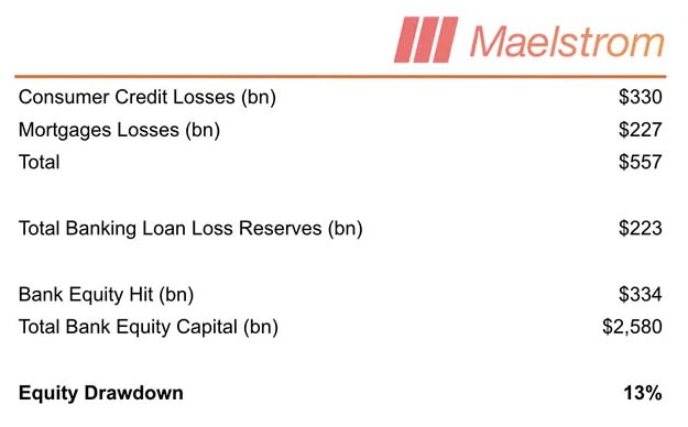 Hayes projects a more severe macro impact if this trend intensifies. He estimates that if 20% of the United States’ 72 million knowledge workers were displaced, the resulting losses in consumer credit and mortgage debt could reach approximately $557 billion. Such a shock would translate into roughly a 13% write-down of U.S. commercial bank equity. Regional banks, in particular, could face acute stress, triggering deposit flight and tightening credit markets.