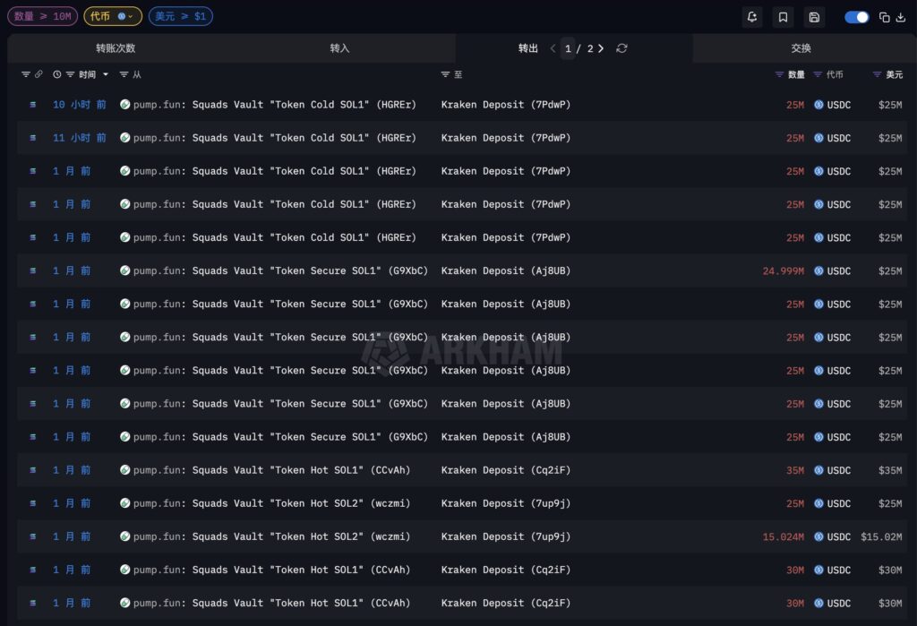 Since November 15, Pump.fun has routed a total of 605 million USDC from ICO sales to Kraken. On-chain records indicate that this flow was not a one-off transaction, but rather a gradual and structured distribution.