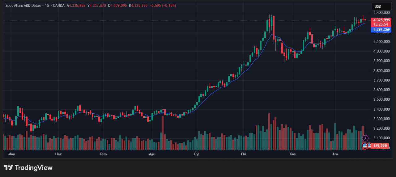 Gold showed limited directional movement following the inflation release. Spot gold traded sideways around $4,325 per ounce, reflecting a balanced market response rather than a decisive trend. U.S. gold futures mirrored this stability, hovering near $4,346 per ounce.