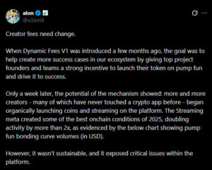 Alon Cohen emphasized that Pumpfun’s main mission is to create a healthy market environment where traders provide liquidity, generate volume, and take risks. However, according to Cohen, the current creator fee structure can at times disrupt this delicate balance and weaken the platform’s natural market dynamics.
