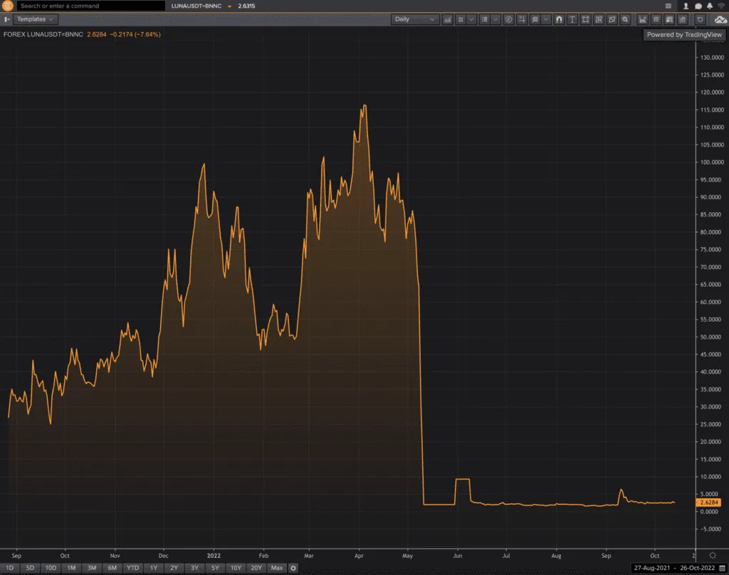 By May 9, UST had begun losing its 1:1 dollar peg, and the Luna token rapidly collapsed. Within a week, approximately $40 billion in market value was wiped out, triggering widespread losses and impacting multiple crypto firms exposed to the ecosystem.