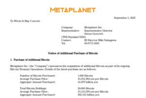 Metaplanet CEO Simon Gerovich previously noted that the company could consider leveraging its Bitcoin holdings by taking on debt to acquire cash-generating businesses in the future. This highlights Bitcoin’s role not only as a reserve asset but also as a strategic financial lever for the firm.