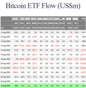 Despite recent volatile price movements, Spot Bitcoin ETFs continue to attract institutional interest. Yesterday’s net inflow of $81.4 million once again highlighted Bitcoin’s importance as a store of value within institutional portfolios.