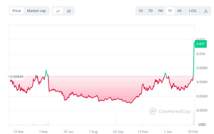 The price of JASMY peaked on February 19, 2024, with a 28.76% increase against the overall crypto market which was up 1.7%. According to CoinMarketCap data, the JASMY token has increased by 77.96% in 7 days. It went from $0.00618 on February 14 to $0.011 on February 20.