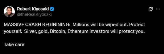 Through this statement, Kiyosaki positioned Bitcoin (BTC) and Ethereum (ETH) alongside gold and silver as essential hedging tools. He argued that these assets can act as safe havens during economic uncertainty, particularly as inflation and central bank policies continue to erode confidence in fiat currencies.