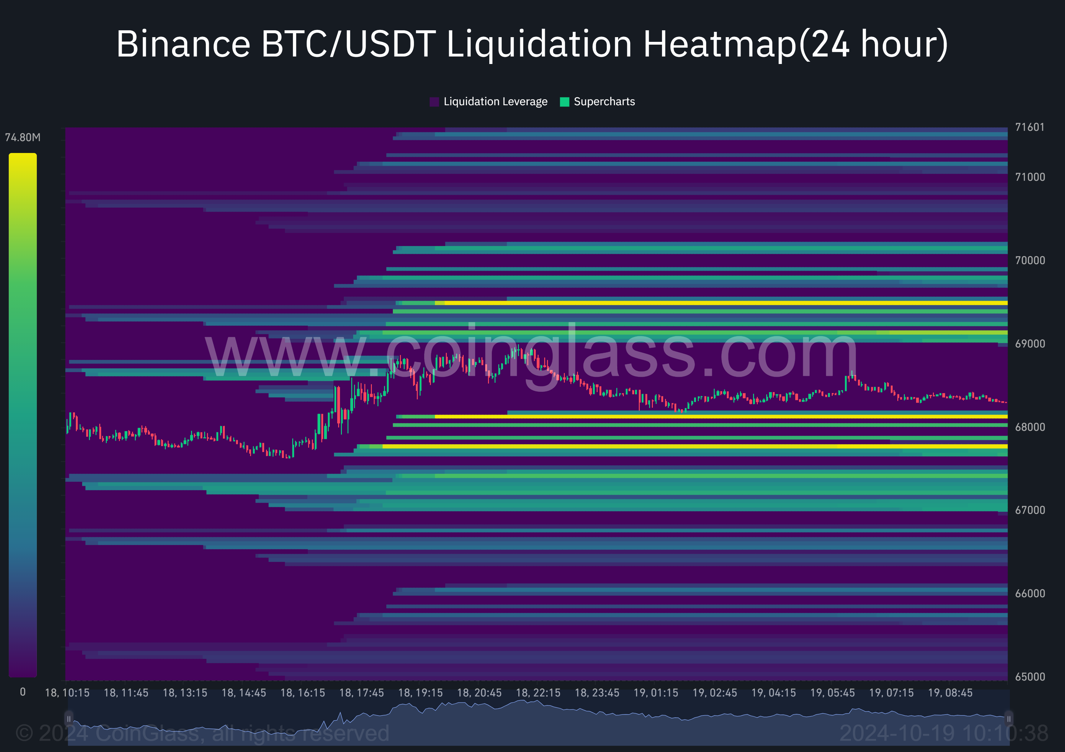 When we look at the Bitcoin liquidation map, we see a concentration in the $ 69,500 and $ 68 to $ 68,700 regions. It is possible that the market will test these levels during periods when it is looking for liquidation.