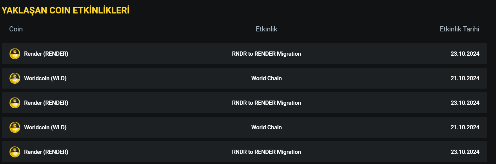 In the events that are always in the spotlight in the crypto world, the closest event to take place is RNDR to REDNER Migration, which will take place on October 23. In addition, the rebranding process is expected to take place on October 21 in Worldcoin.