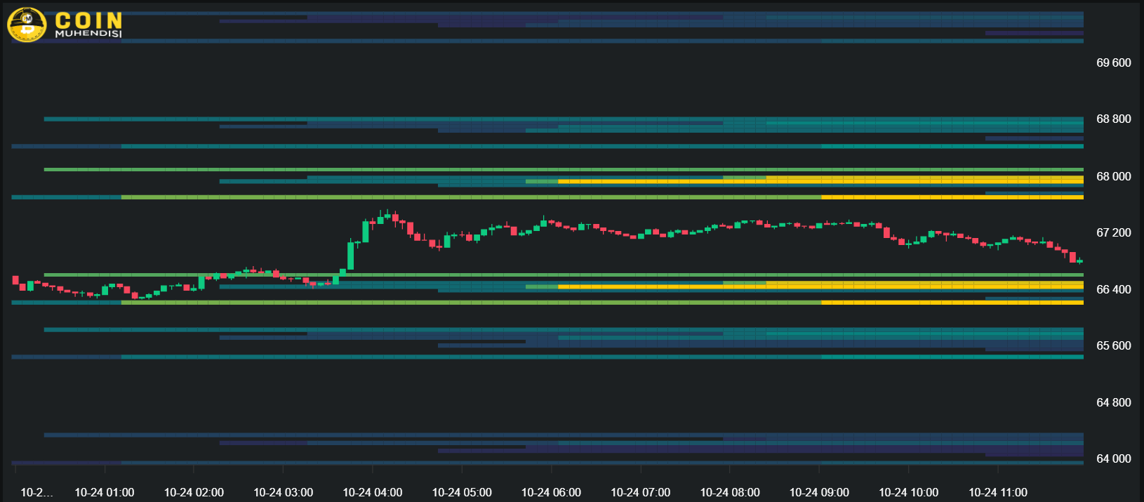 When we look at Bitcoin’s 12-hour liquidation map, the noticeable liquidation on the top side is $67,877 with a value of $12.85 million. On the bottom side, the level of $66,902 with a value of $20.74 million stands out.