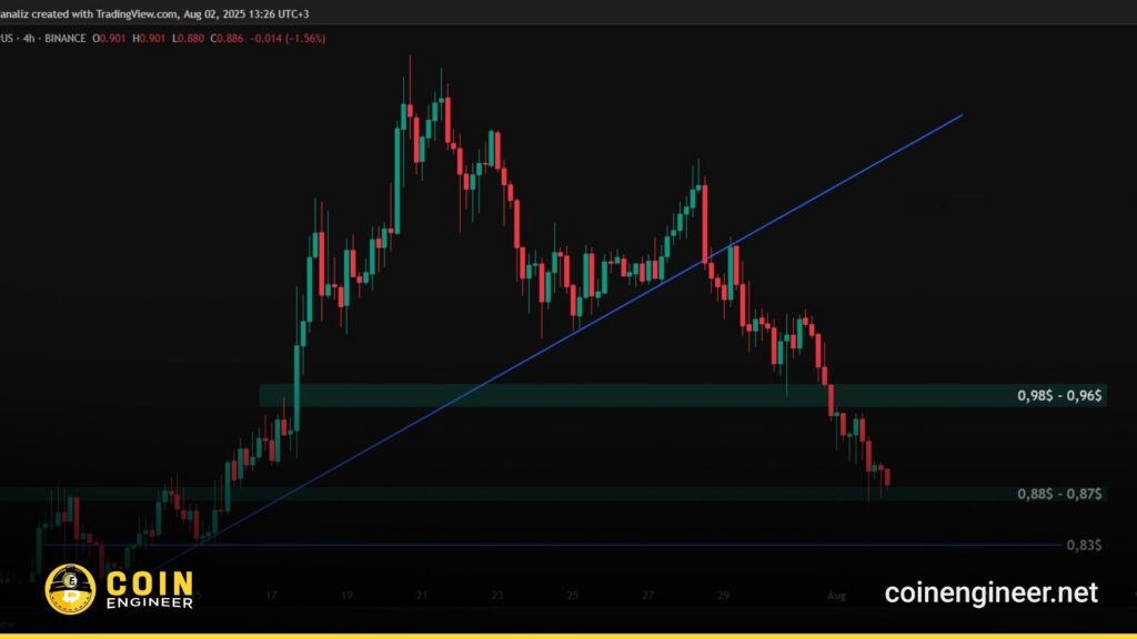 In a potential recovery scenario, the immediate resistance is situated in the 0.96 – 0.98 range. A successful move above this region could open the door for a climb toward 1.05. However, for this breakout to be sustainable, it would require not just technical confirmation, but also a more favorable overall market sentiment.