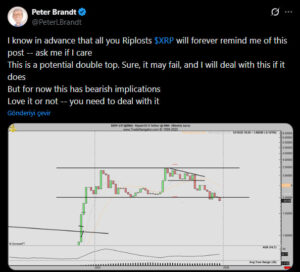 Legendary analyst Peter Brandt, known for his accurate market calls and closely followed by a large investor base, has issued a striking warning for XRP. Brandt’s latest technical analysis highlights strengthening bearish signals on XRP’s weekly chart, pointing to a potential trend reversal. In particular, the price struggling at critical resistance levels suggests increasing selling pressure in the market. The analyst cautions investors to act more carefully and with greater discipline due to the possibility of a double top formation.