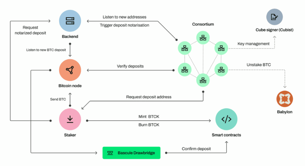 • Integrates Bitcoin into DeFi protocols to create new liquidity flows.