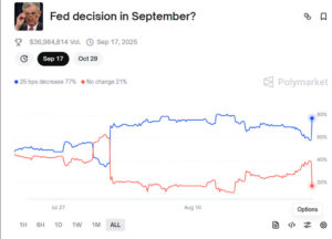 In recent weeks, Polymarket data showed the probability of a September rate cut at around 35%. However, following Powell’s comments and positive reports on the U.S. economy, this figure has surged to as high as 80%.