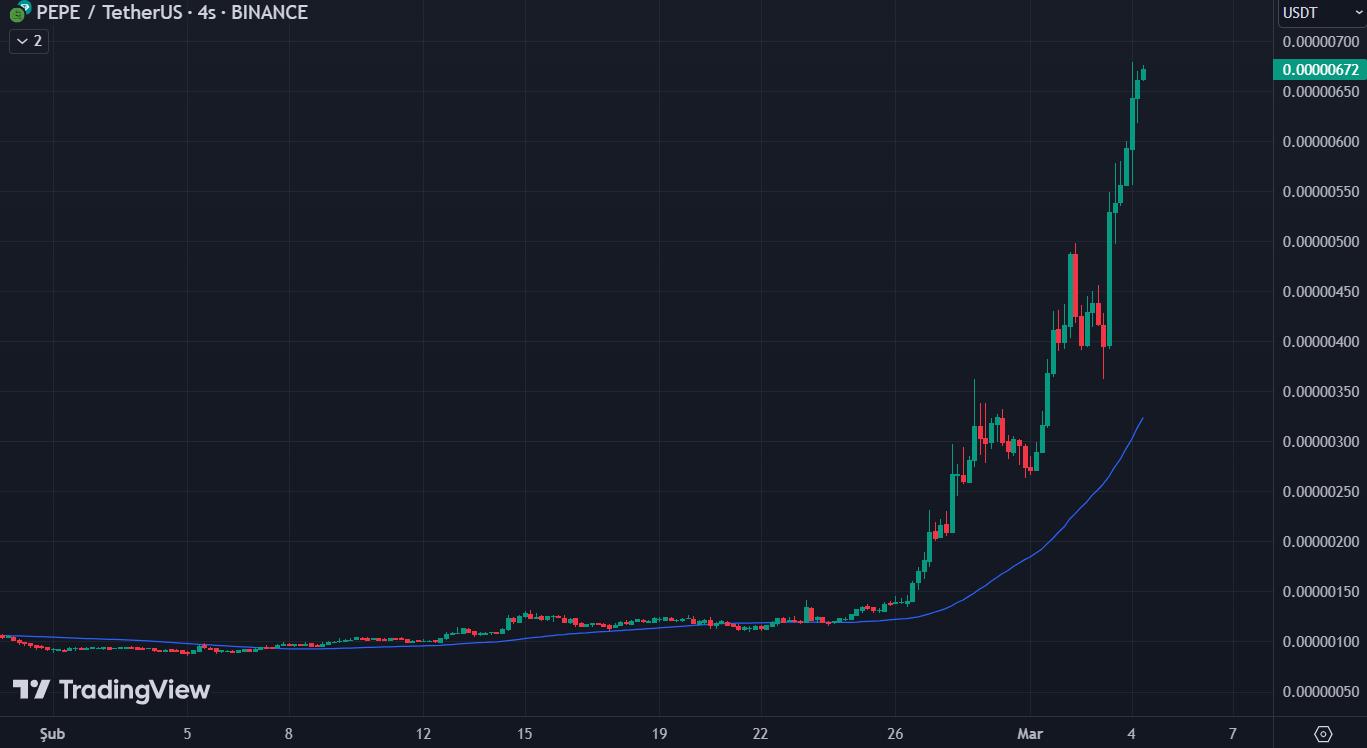 According to CoinMarketCap’s data PEPE price went up almost 68 percent today. PEPE on a bullish trend almost for a week and its price up 382 percent in last 7 days.