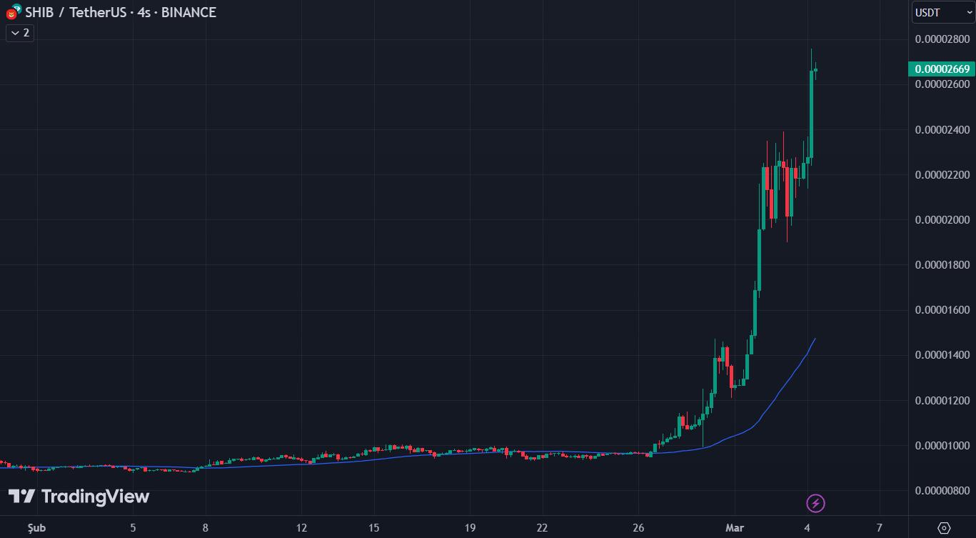 Shiba, which increased by more than 50 percent last week according to CoinMarketCap data, rose more than 2 percent today. With this rise, the popular memecoin is trading at $0.00002669.