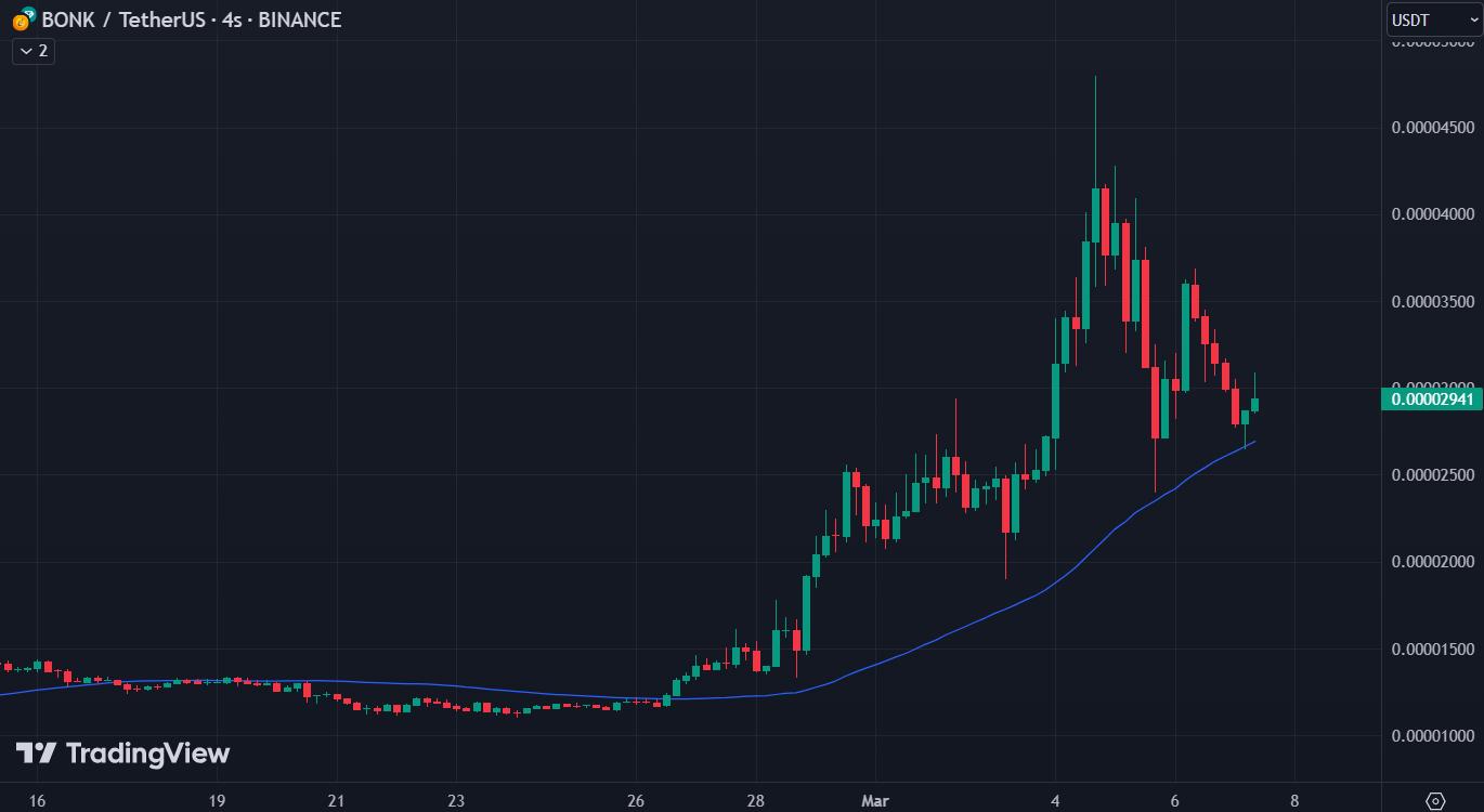 According to CoinMarketCap’s data BONK has fallen more then 17% and now trading at $0000.29.