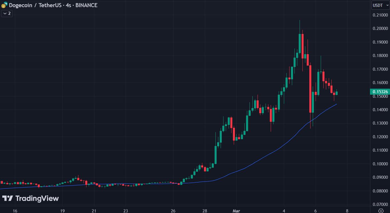 The price in DOGE fell by nearly 12 percent in the last 24 hours. However, DOGE is currently trading at $0.15.
