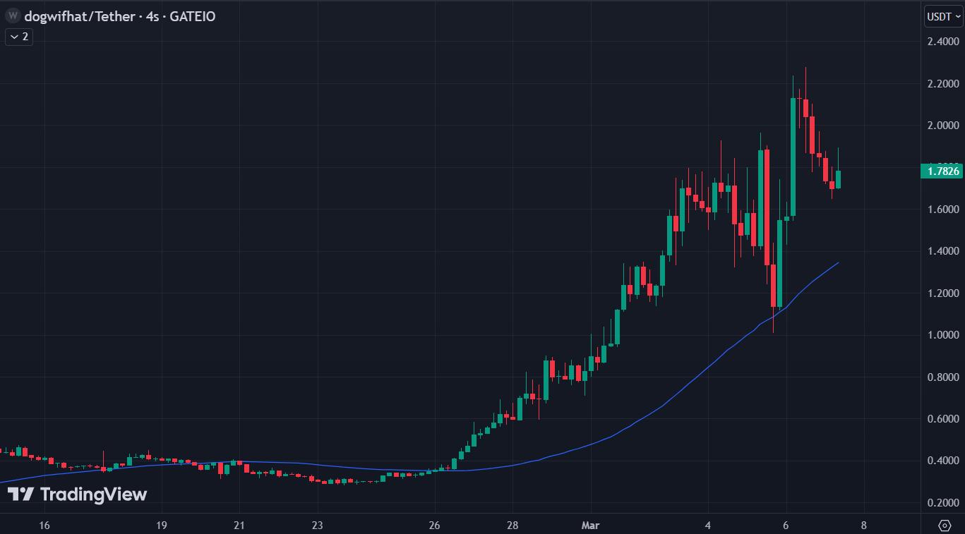 Last weeks popular memecoin Dogwifhat has fallen almost 18% according to CoinMarketCap’s data. WIF currently trading at $1.77.