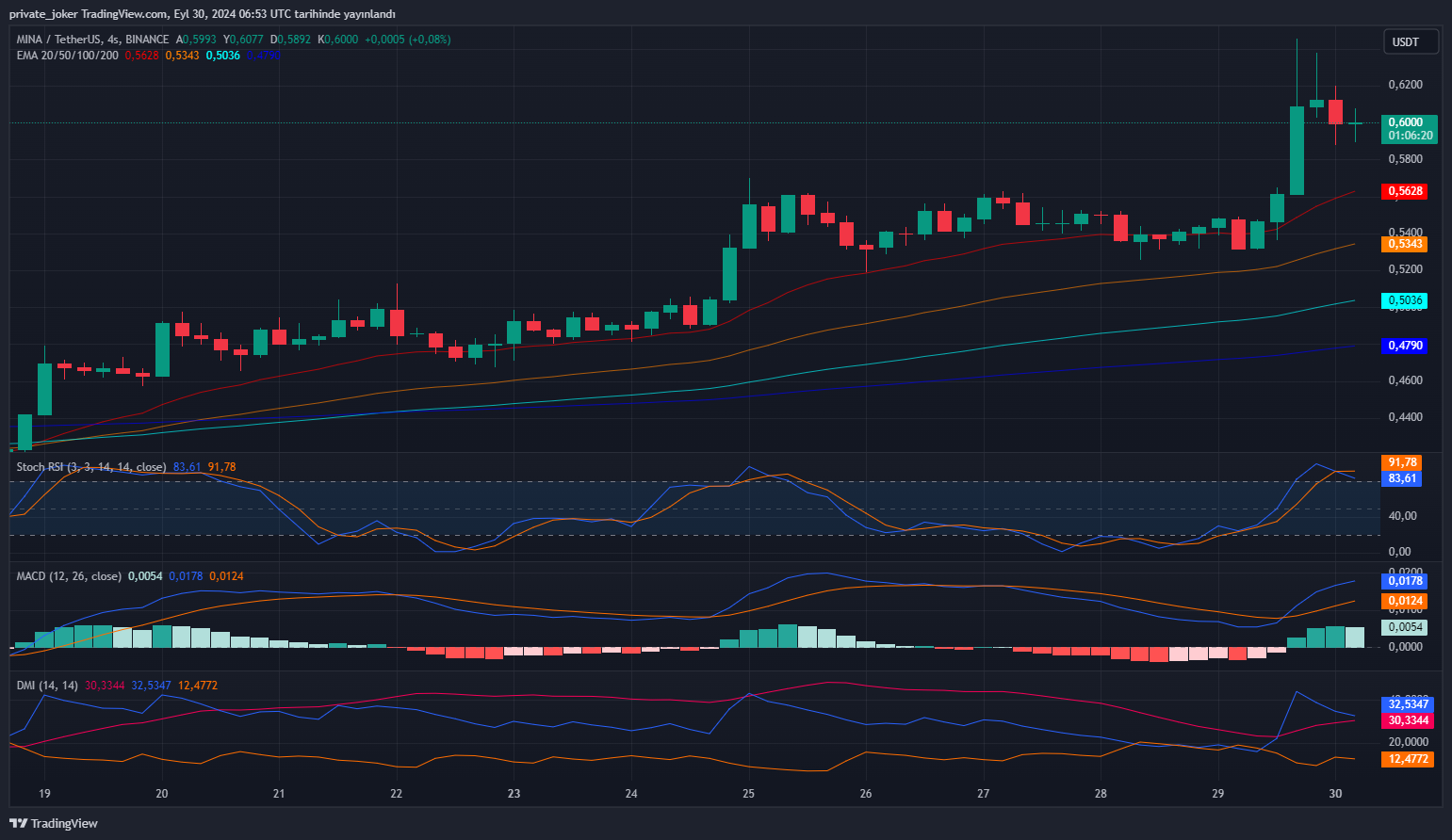 - Market Capitalization: MINA’s market cap has risen by 10.57%, reaching $693.86 million. This increase indicates growing investor confidence and interest in the token.