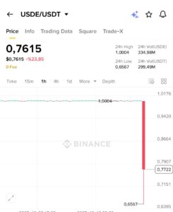 The announcement led to massive sell-offs in global markets, and approximately $10 billion in crypto positions were liquidated. During this turmoil, USDE, the stablecoin of the Ethena ecosystem, briefly fell below $1, experiencing what is known as a “depeg.”