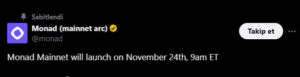One of the most anticipated high-performance Layer-1 blockchain projects, Monad, has officially revealed the launch date for its mainnet and MON token. According to the announcement from the project’s foundation, Monad’s mainnet and MON token will go live on November 24, 2025. The launch will coincide with the activation of a token airdrop designed for early users.