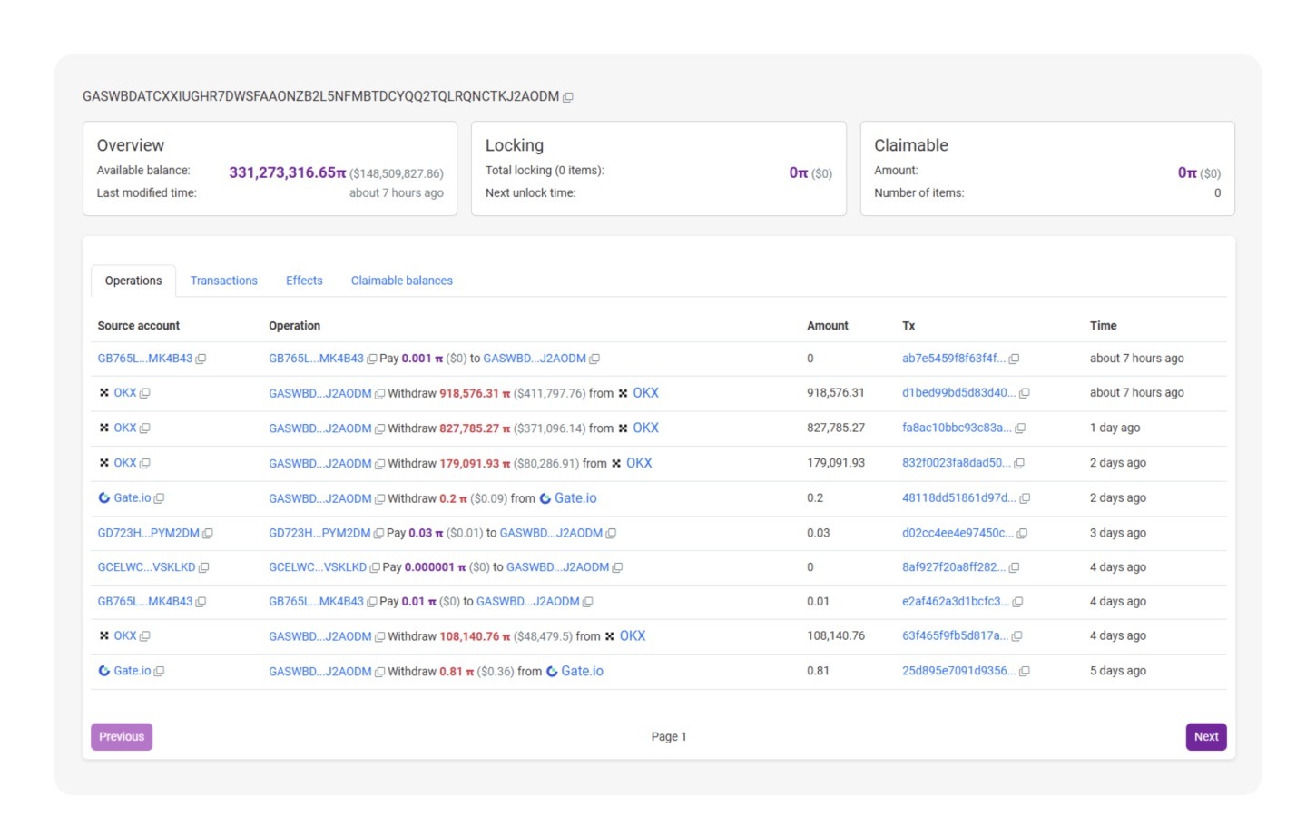 Over the past three months, a mysterious crypto wallet identified by the label GAS…ODM has managed to accumulate 331 million Pi Coin. According to blockchain tracking platforms like Piscan, this holding is valued at approximately $148.5 million.