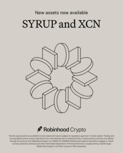U.S.-based investment platform Robinhood continues to expand its range of crypto products. According to the company’s announcement, Onyxcoin (XCN) and SYRUP tokens have been added to Robinhood’s listing program. This development is considered an important step in increasing accessibility and visibility for both crypto assets.