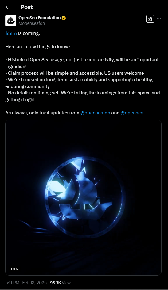 One of the world’s largest NFT marketplaces, OpenSea, has officially announced its long-awaited native token, $SEA. This new token aims to strengthen the platform’s ecosystem, enhance user experience, and encourage community participation.