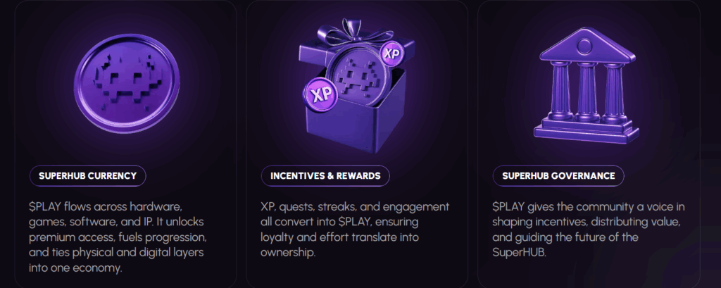 The $PLAY token powers the entire SuperHUB economy. Players can earn and use $PLAY to enhance progress, unlock premium content, and participate in governance decisions shaping SuperHUB’s future.