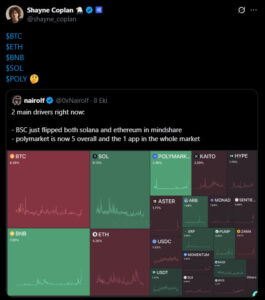 In his post, Coplan used the terms “$BTC $ETH $BNB $SOL $POLY”, suggesting that the potential token could rank among the largest crypto assets in the market. This announcement fueled speculation about the POLY token among both investors and the broader crypto community.