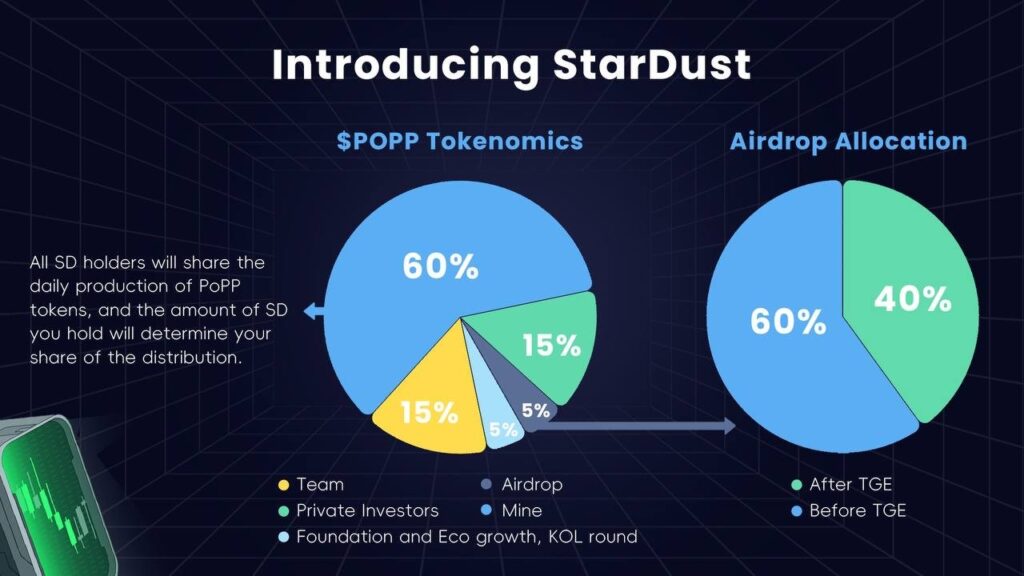 • 5% Airdrop (2.5% PoPPAT pre-TGE, 2.5% PoPP post-TGE)