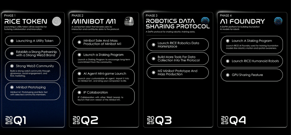 Supported by Rice Robotics, a Hong Kong-based company with over 500 robots worldwide, the project leverages strong technological infrastructure. The $RICE token is at the core of the platform’s data collection and participant reward mechanisms.