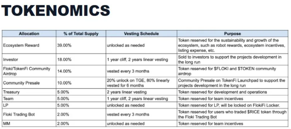 - Deflationary Tokenomics: Part of fees is burned, reducing $RICE supply and increasing potential value.