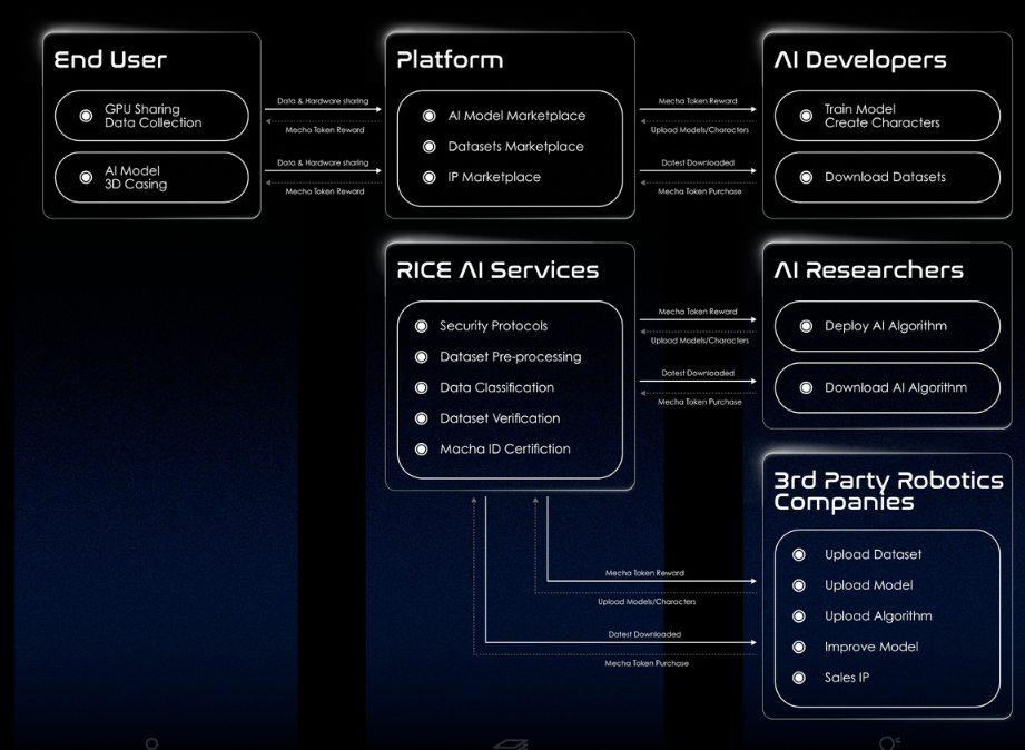 - Decentralized Data Collection: Robots and companies earn $RICE by sharing data.