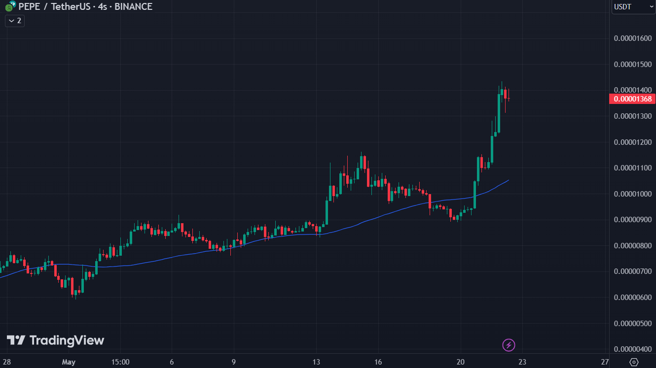 Like Rose, Pepe continues the day calmly. According to TradingView data, Pepe, traded at $0.00001369, started the day with a 2 percent decrease.