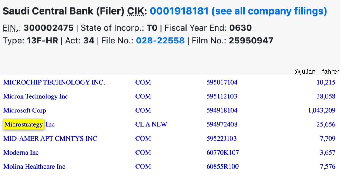 In a groundbreaking shift from its traditional investment approach, the Saudi Central Bank has taken a step toward the digital asset space by acquiring shares in Strategy (formerly known as MicroStrategy), a company renowned for its heavy Bitcoin exposure. According to recent disclosures, the bank purchased 25,656 shares, valued at approximately $10.19 million.