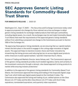 The new standards are based on regulations requested by Nasdaq, NYSE Arca, and Cboe BZX Exchange. These exchanges had asked the SEC for a rule change under “Proposed Rule 14.11(e)(4)” to allow the generic listing and trading of commodity-based trust shares.