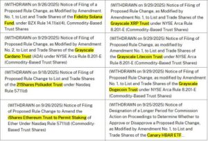 Closely followed by crypto investors, 19b-4 filings involved an exchange requesting permission from the SEC to list a new product — for example, an ETF. Each new ETF required a separate filing, and the process typically led to: