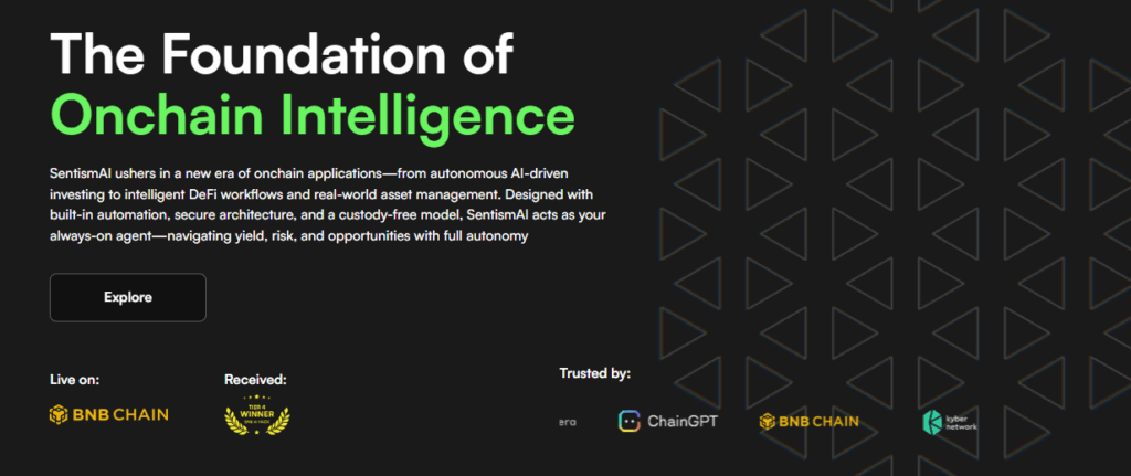 SentismAI is an innovative platform that introduces an AI-powered automation layer to the Web3 and DeFi ecosystem. Built on BNB Chain, it is compatible with all EVM-supported blockchains. The platform enables users and protocols to execute trading, risk management, yield optimization and DAO governance entirely via autonomous AI agents. SentismAI makes automation secure and accessible for both professional DeFi users and beginners.