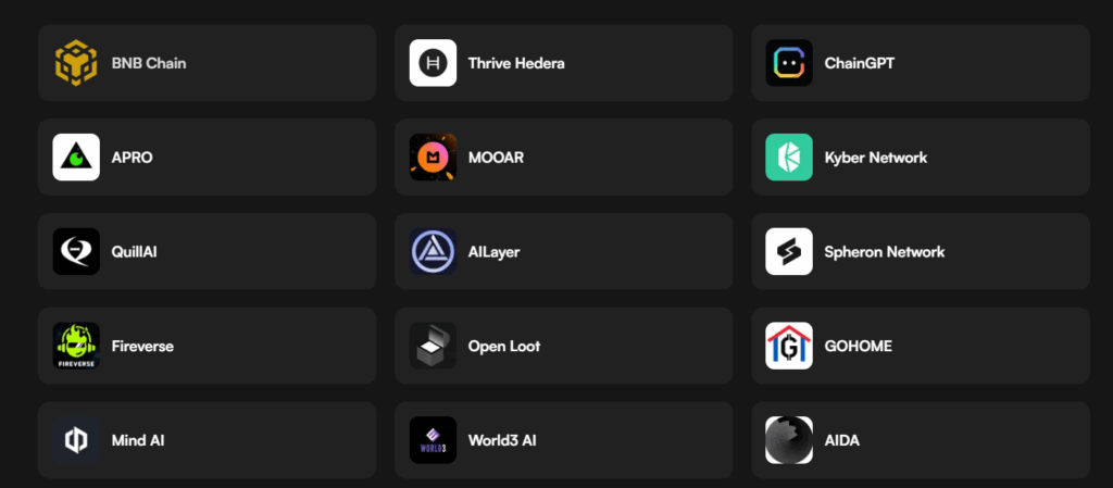 To strengthen its ecosystem and support AI-powered DeFAI automation, SentismAI collaborates with numerous strategic partners. Key partners include: