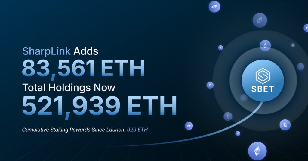 What’s even more striking is that the company stakes its entire ETH holdings. Through this strategy, SharpLink has so far earned 929 ETH in accumulated staking rewards. The company’s long-term HODL approach combined with an active staking policy sets it apart from many competitors in the industry.