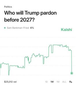 Following President Trump’s statement that he will not pardon SBF, a sharp decline was observed in crypto and financial prediction markets. Market data indicate a pullback after the possibility of a pardon faded. Analysts note that investors interpreted the news as a risk signal, increasing short-term volatility. This movement highlights the direct impact of Trump’s pardon decisions on crypto markets and investor expectations.