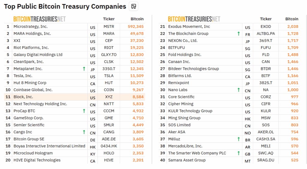 Top 20 public Bitcoin treasury companies – BitcoinTreasuries
