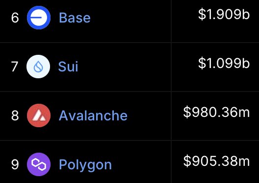 Data according to DefiLama SUI has surpassed Avalanche on TVL.