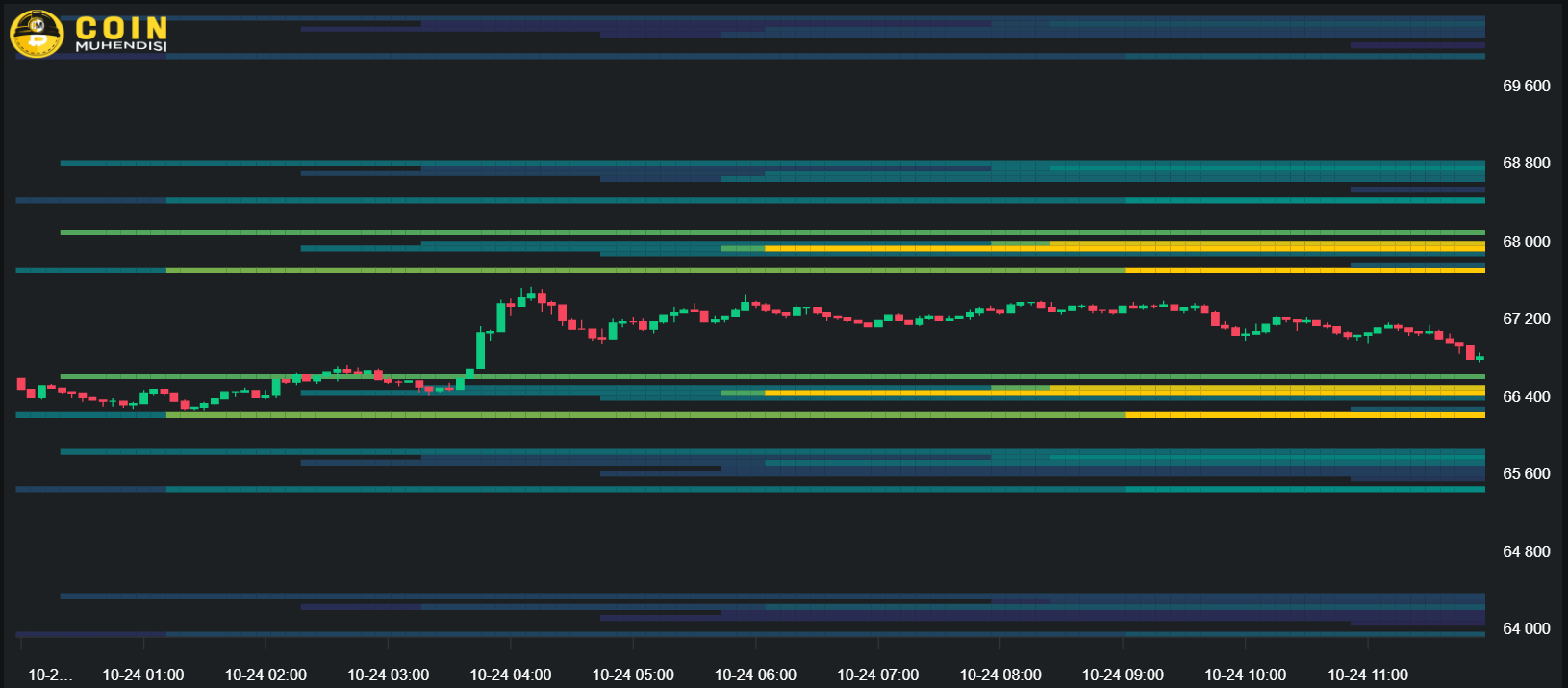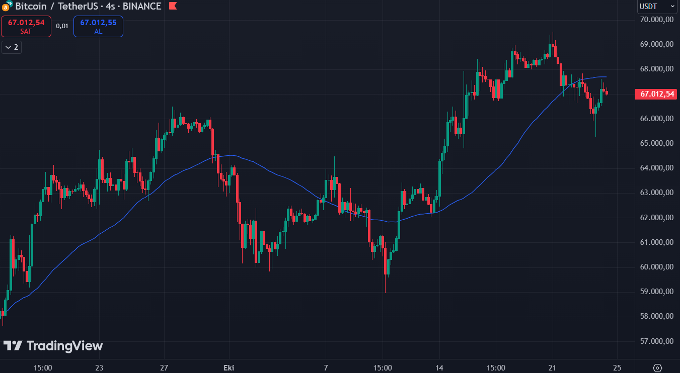 The BTC/USDT parity gained 0.5% in the last 24 hours and is currently trading at $67,176. Bitcoin (BTC) may fall to the lower support level of $66,000 – $63,200 if the decline deepens. Although it seems to have received a reaction from this region, there has not been a volume increase yet. The broken support can be expected to work as resistance. In other words, if the price rises to $67,800 – $70,000, if this region is not broken with volume, the decline may deepen.