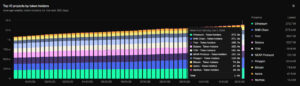 Among the standout projects on the list is Polygon (POL). The network grew by 7.4% in the last 30 days, reaching 120.4 million users — one of the highest growth rates among major ecosystems.