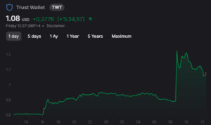 The latest development stirring the cryptocurrency market comes from the Trust Wallet (TWT) token. Following comments from Binance co-founder Changpeng Zhao (CZ), TWT quickly gained over 40% in value, rising from $0.89 to above $1.2. The token even briefly tested $1.3 on the Binance exchange.